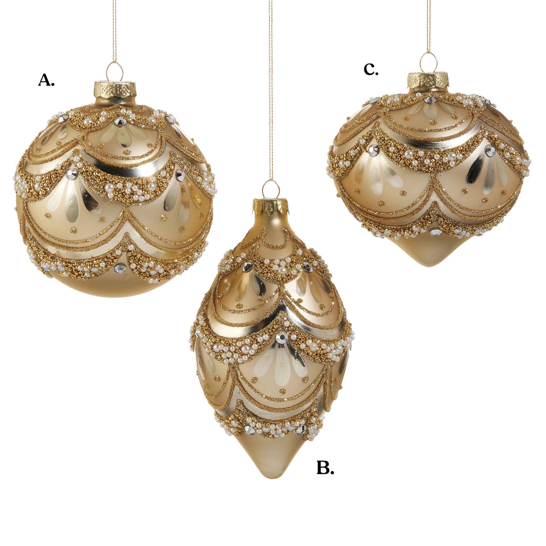 4" Gold Pearl Trimmed Ornament - Assorted & Sold Separately