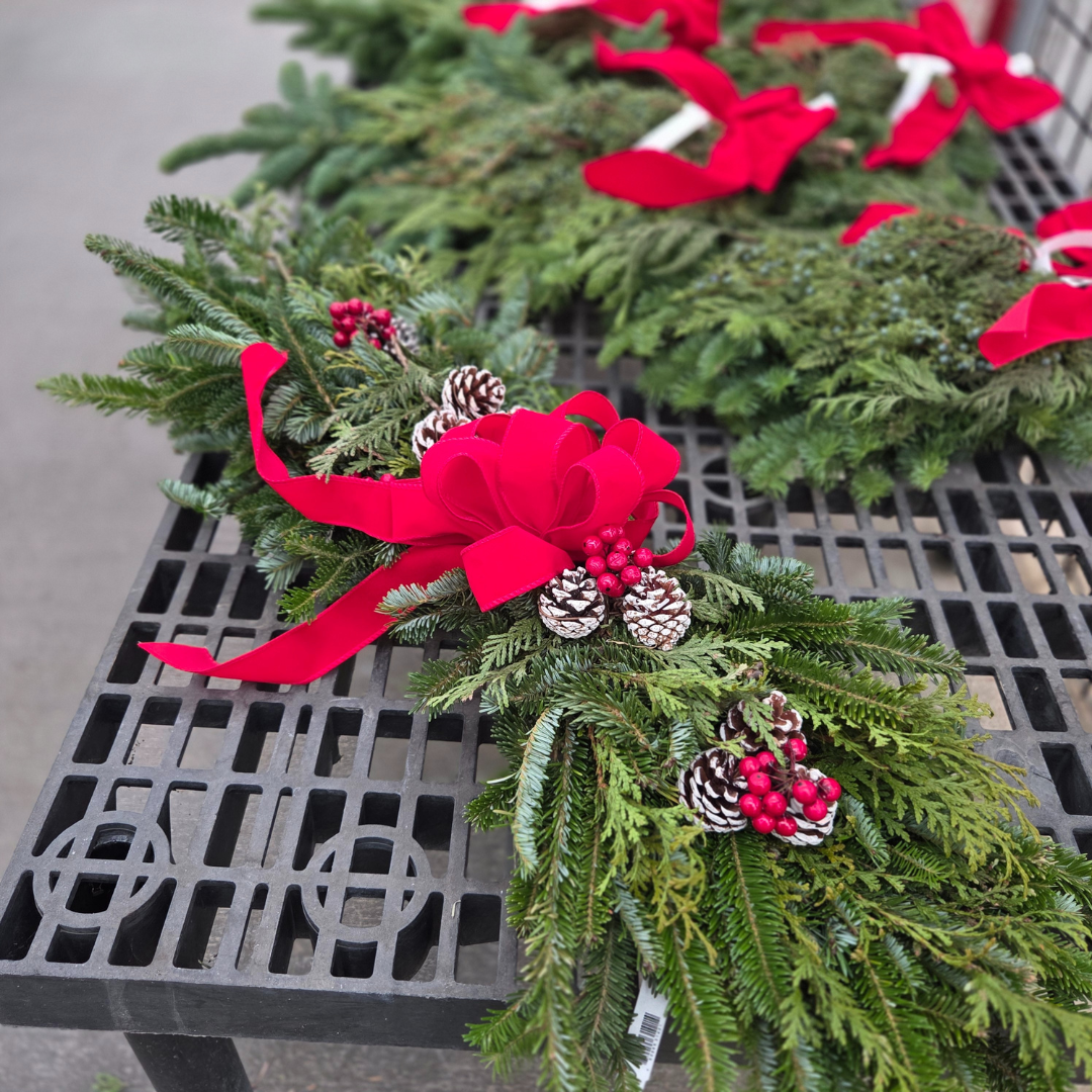 Made from fresh, fragrant evergreens and artfully accented with festive embellishments, it brings classic holiday elegance to any window, mantle, table, or porch. Its lush texture and seasonal details create a warm, welcoming look—perfect for adding a touch of Christmas charm to your home’s exterior or interior décor.