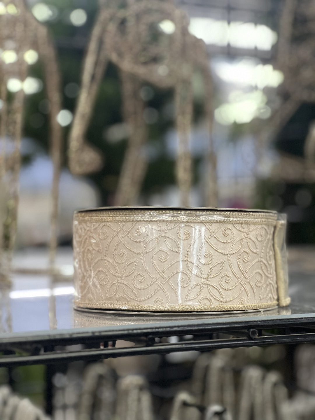 2.5" x 10 Yds Damask Champagne Jacquard Ribbon