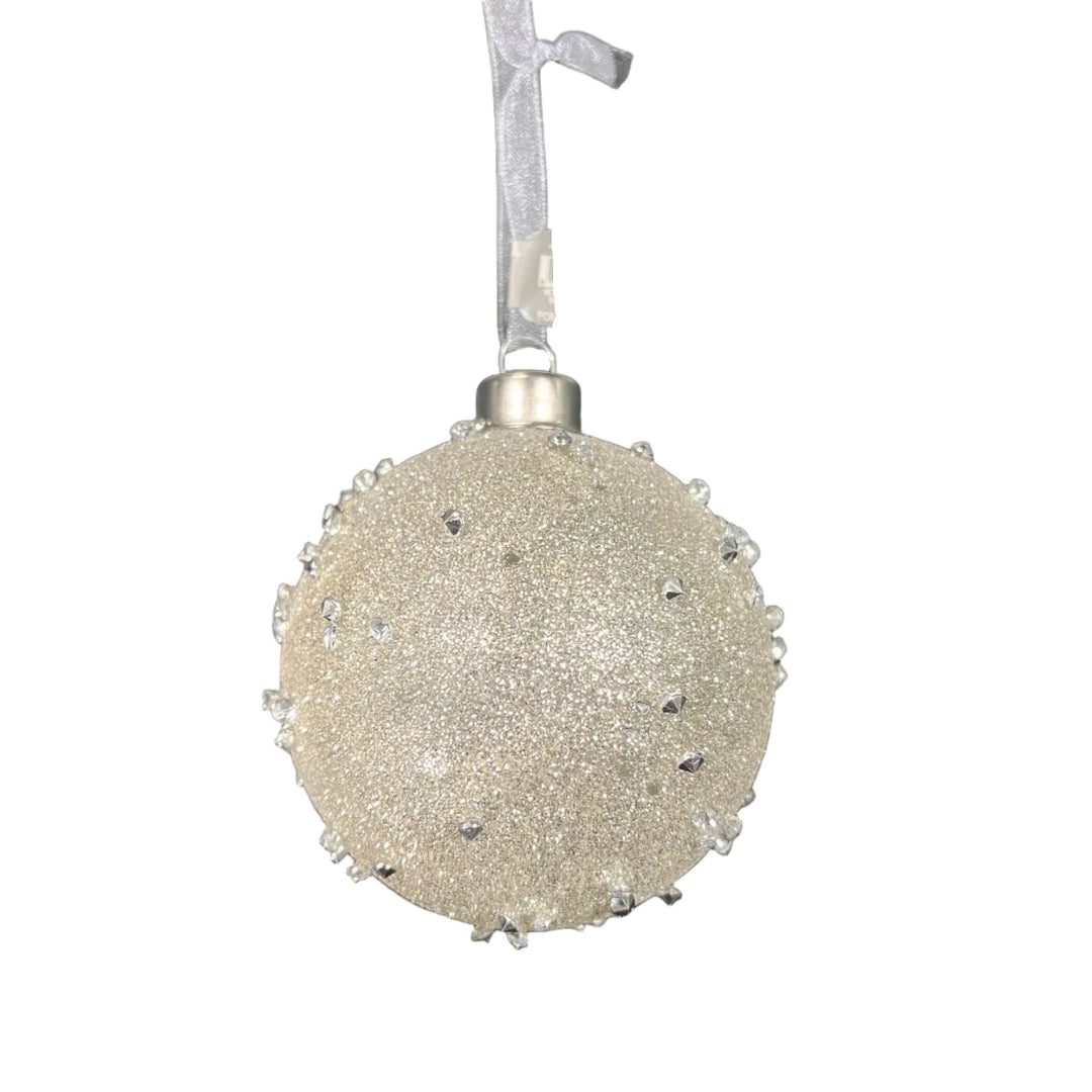 Beaded Metallic Glass Ball Silver Ornament 3"