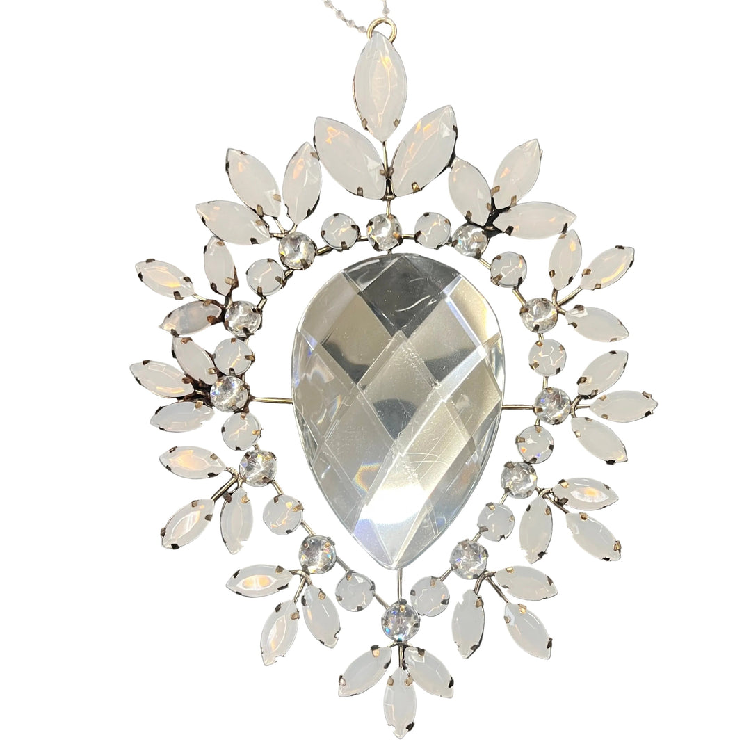 Glass Jewel Iridescent Snowflake Ball Ornament 4"