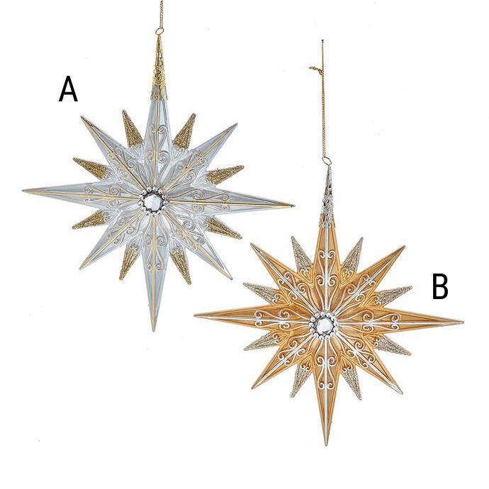 Gold or Silver Star W/ Clear Gem Center Ornament, Assorted and Sold Separately