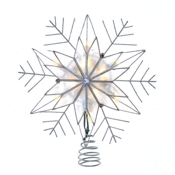 10" 10-Light LED Silver Capiz & Wire Snowflakes Treetop