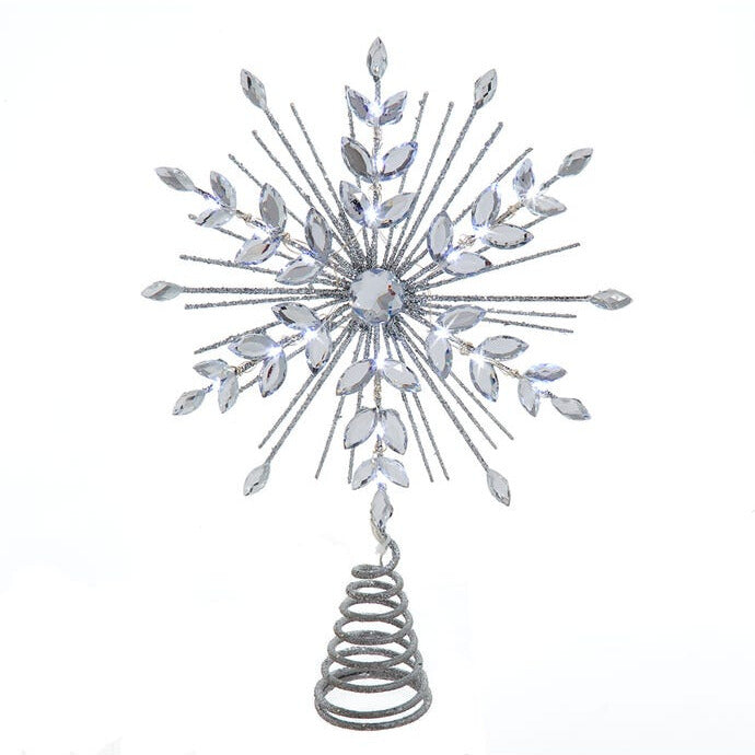 11.75" Lighted Silver Glittered Snowflake Treetop, 18L