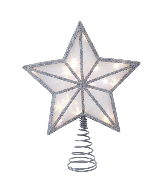 11.5" UL 20L Warm White Fairy LED Silver Glitter Star Treetop