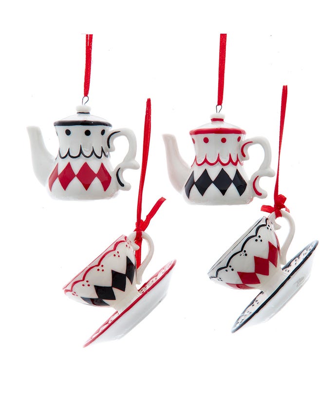 Diamond Pattern Teapot or Cup Ornament, Assorted and Sold Separately