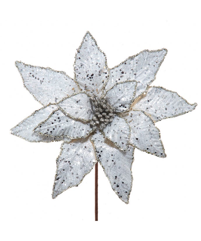 Metallic Silver Poinsettia Pick