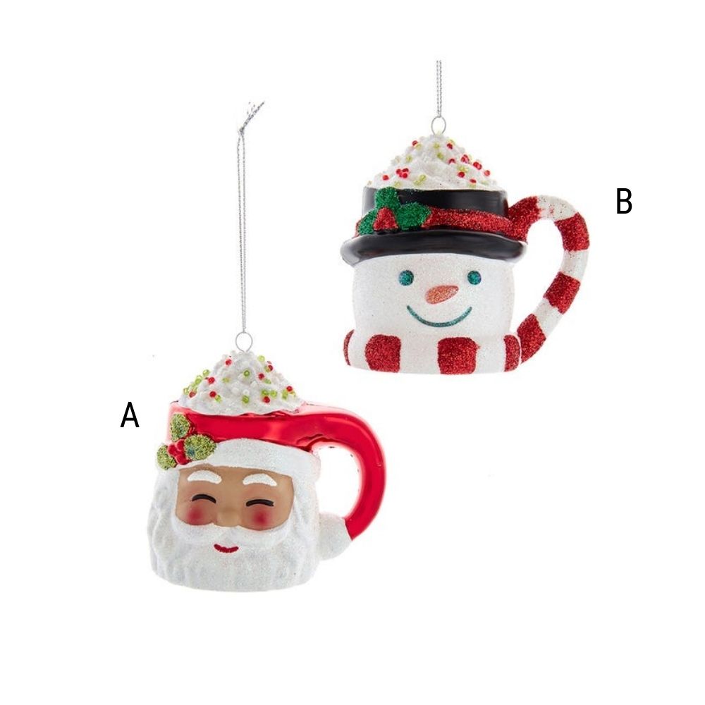 Santa or Snowman Mug Ornament, Assorted and Sold Separately