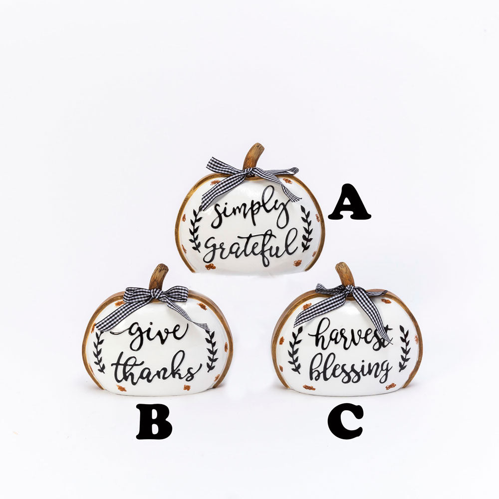 Gerson Company, Harvest Sign Pumpkin Assorted, Silver, Resin, 8.2"L