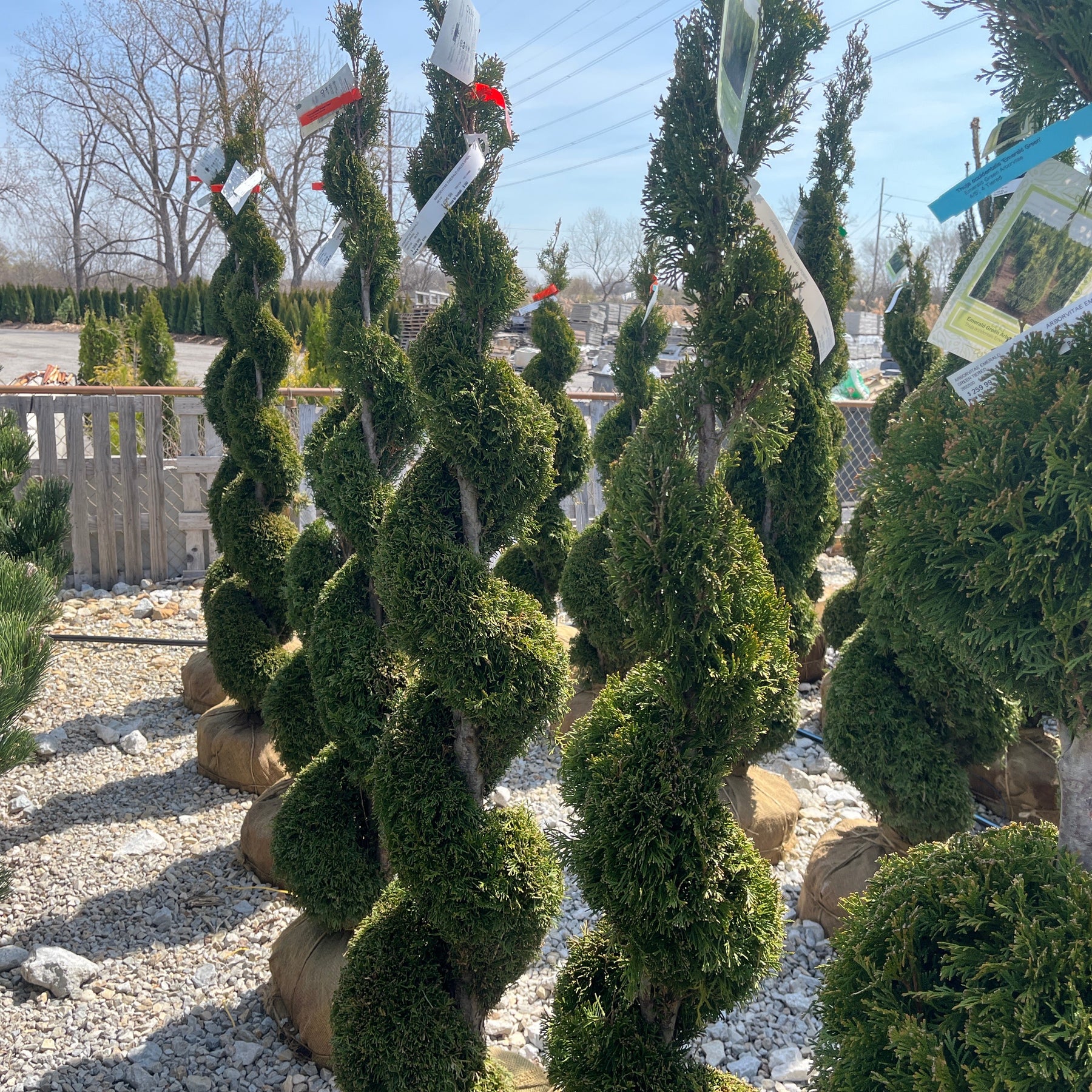 Emerald Green Arborvitae (Spiral) - Thuja occidentalis 'Smaragd' - 5-6 Foot Ball & Burlap Topiary Tree