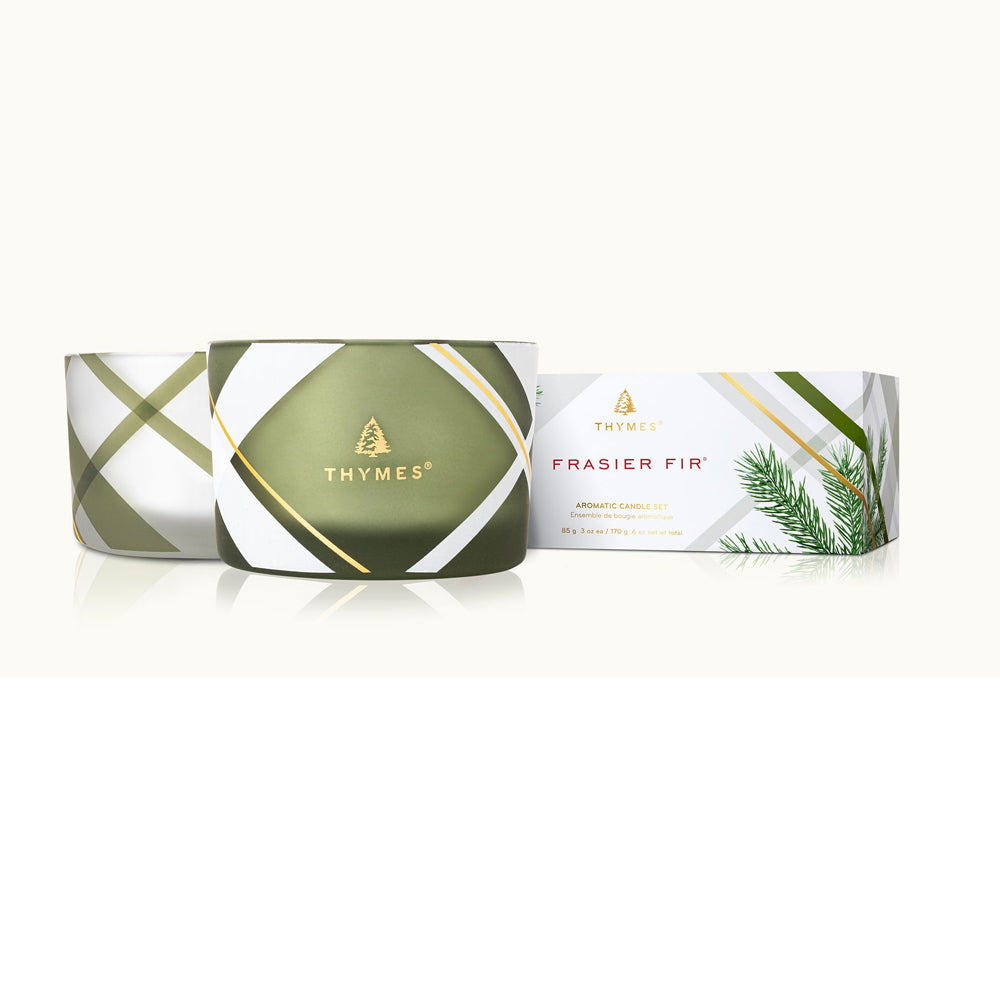 Thymes, Frasier Fir Frosted Plaid Pour Candle Set, 6 oz.