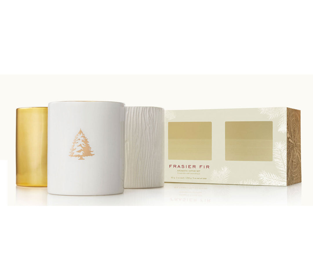 Thymes, Frasier Fir Frosted Plaid Votive Trio, 6 oz.
