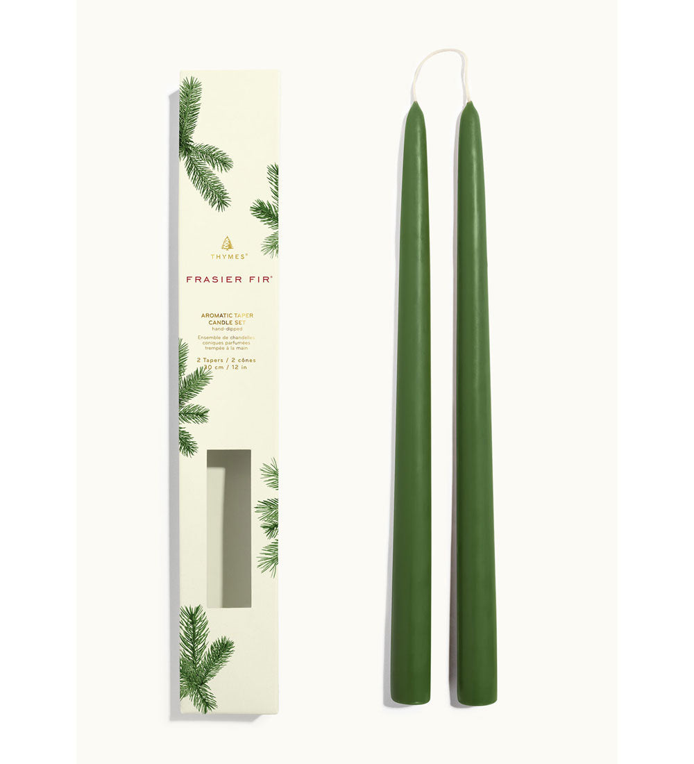 Thymes, Frasier Fir 12'' Taper Candle Set, Green