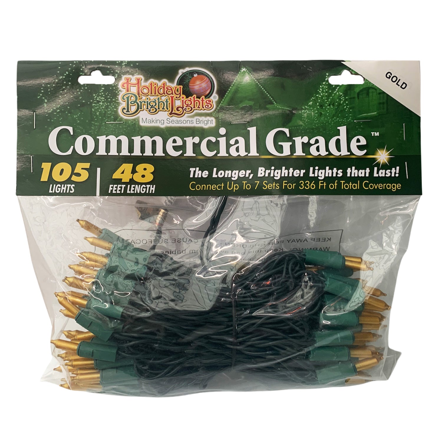 Holiday Bright Lights Commercial Grade Light Set, 105-Lights, 48-Feet Length, Gold Frost Bulbs