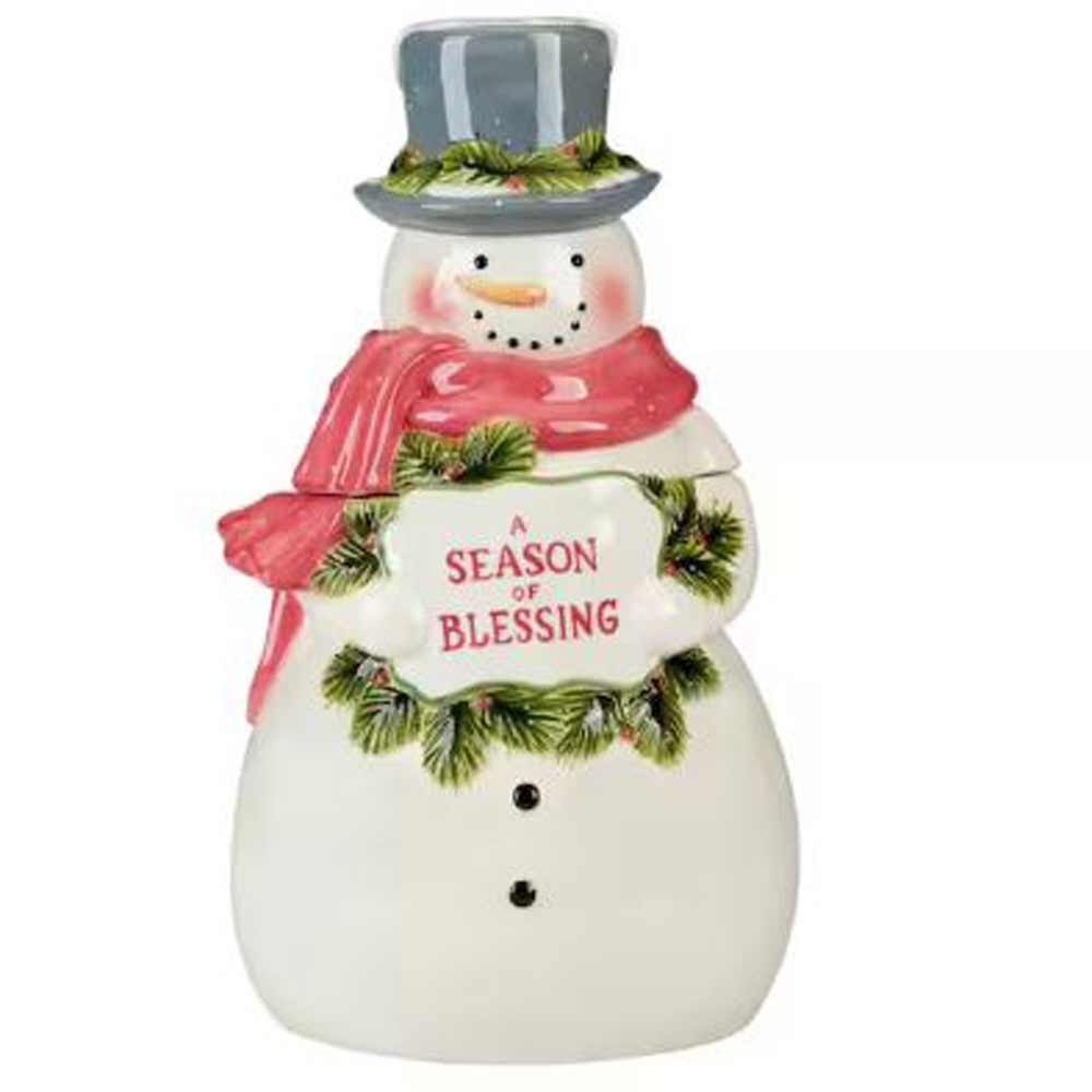 This delightful Santa's Secret 3-D Cookie Jar, standing at 11.75 in. and holding 64 oz., is a whimsical piece designed by Wendy Wiinanen, available exclusively through Certified International. The charming3-dimensional Santa is both a festive decoration and a functional storage solution for your holiday treats. Not only is it a unique addition to your countertop during the festive season, but it's also microwave and dishwasher safe, which is surprisingly practical for such a decorative item. It can be beautifully paired with other dinnerware and serve ware from the Santa's Secret collection, allowing you to create a cohesive holiday theme throughout your kitchen and dining area. Moreover, this cookie jar makes for an excellent gift, sure to bring the joy and mystery of Santa's workshop to any home.