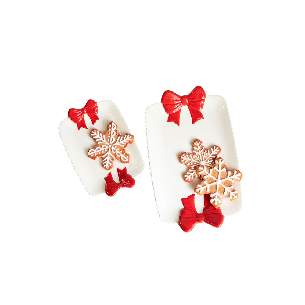Add a touch of festive charm to your holiday entertaining with our Bow Platters. Crafted from high-quality ceramic, these elegant platters feature striking red bows on either end, creating a beautiful and whimsical accent to your table. Perfect for serving appetizers, desserts, or festive treats, these platters combine functionality with holiday style.