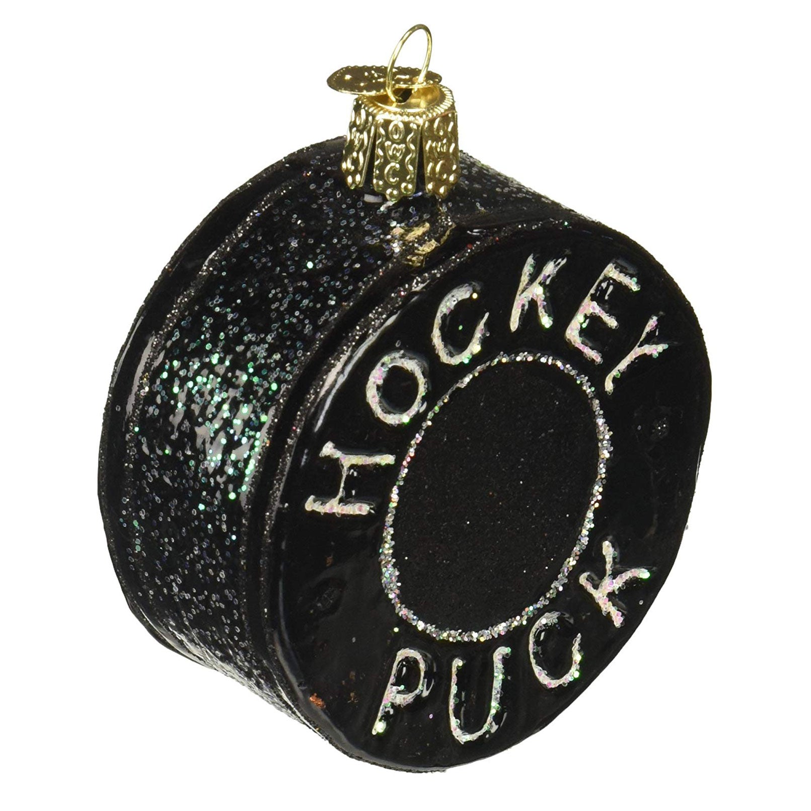 Old World - Hockey Puck Ornament. Approximate Dimensions: 3.25 H X 2.75 L X 1.25 W.