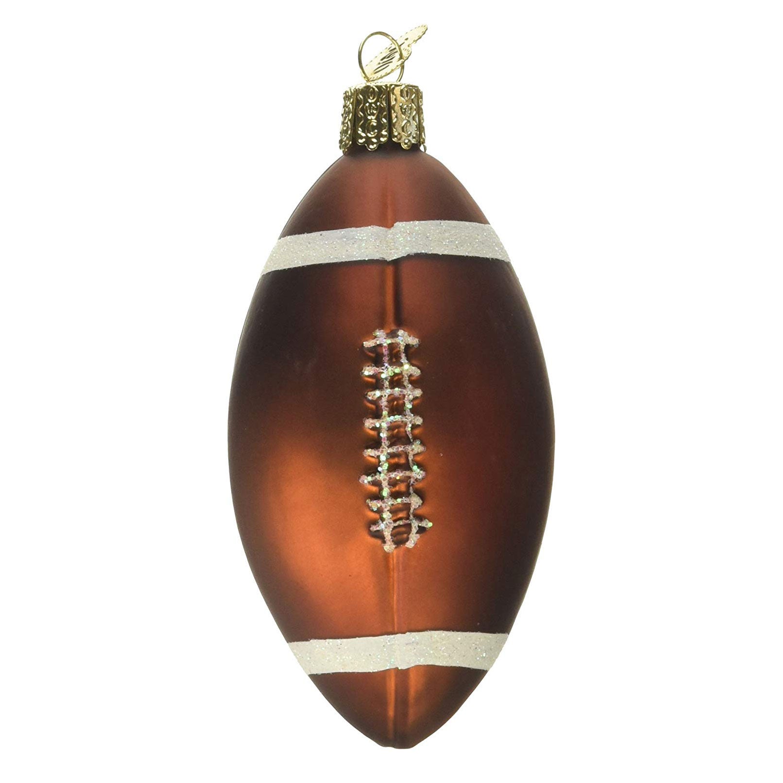 This glass Football ornament makes a great gift for any sports enthusiast. It was carefully mouth-blown into a finely crafted mold. Then a hot solution of liquid silver was poured inside. Finally, the ornament was delicately hand-painted with brightly colored lacquers and glitters for you to enjoy!