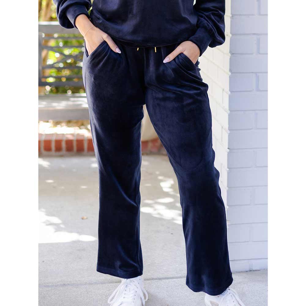 Introducing our Chelsea Pants, crafted from premium velour material creating the perfect blend of comfort and elegance. These pants feature a full length straight leg for a touch of sophistication and a soft, stretchy fit that moves with you. With a relaxed silhouette, it drapes beautifully and is perfect for travel or everyday wear. Ideal for both casual and dressy occasions, these pants add a chic, luxurious feel to any outfit.