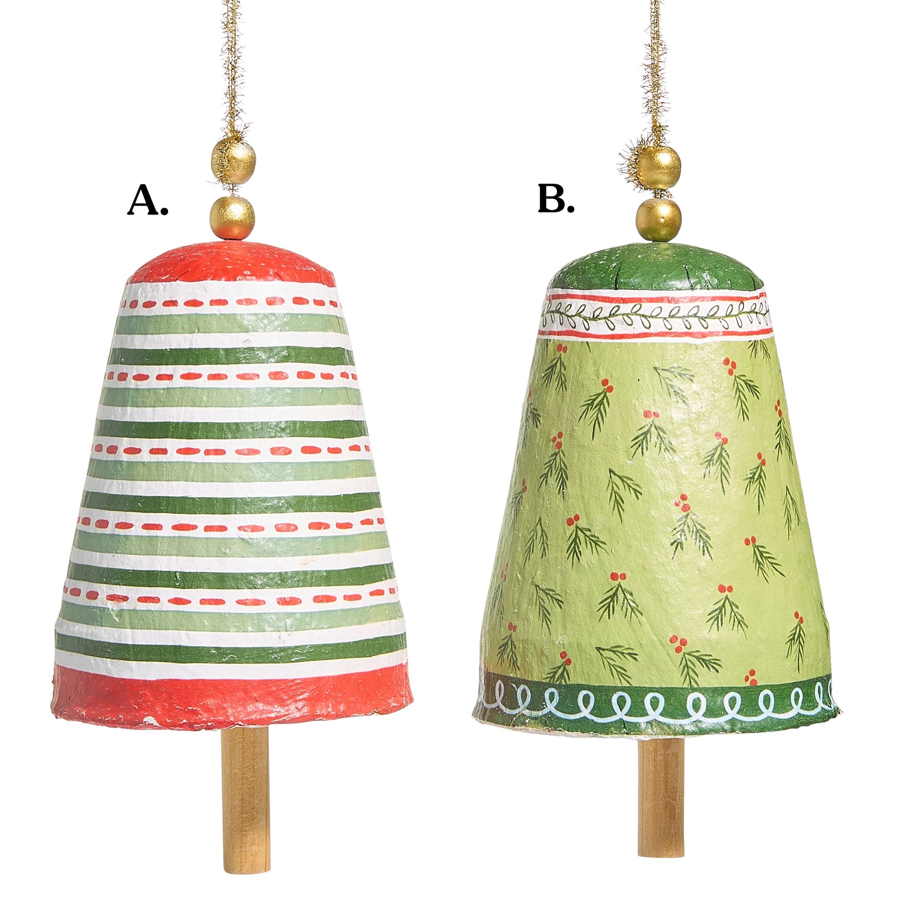 10" Pattern Christmas Paper Mache Bell Ornament - Assorted & Sold Separately