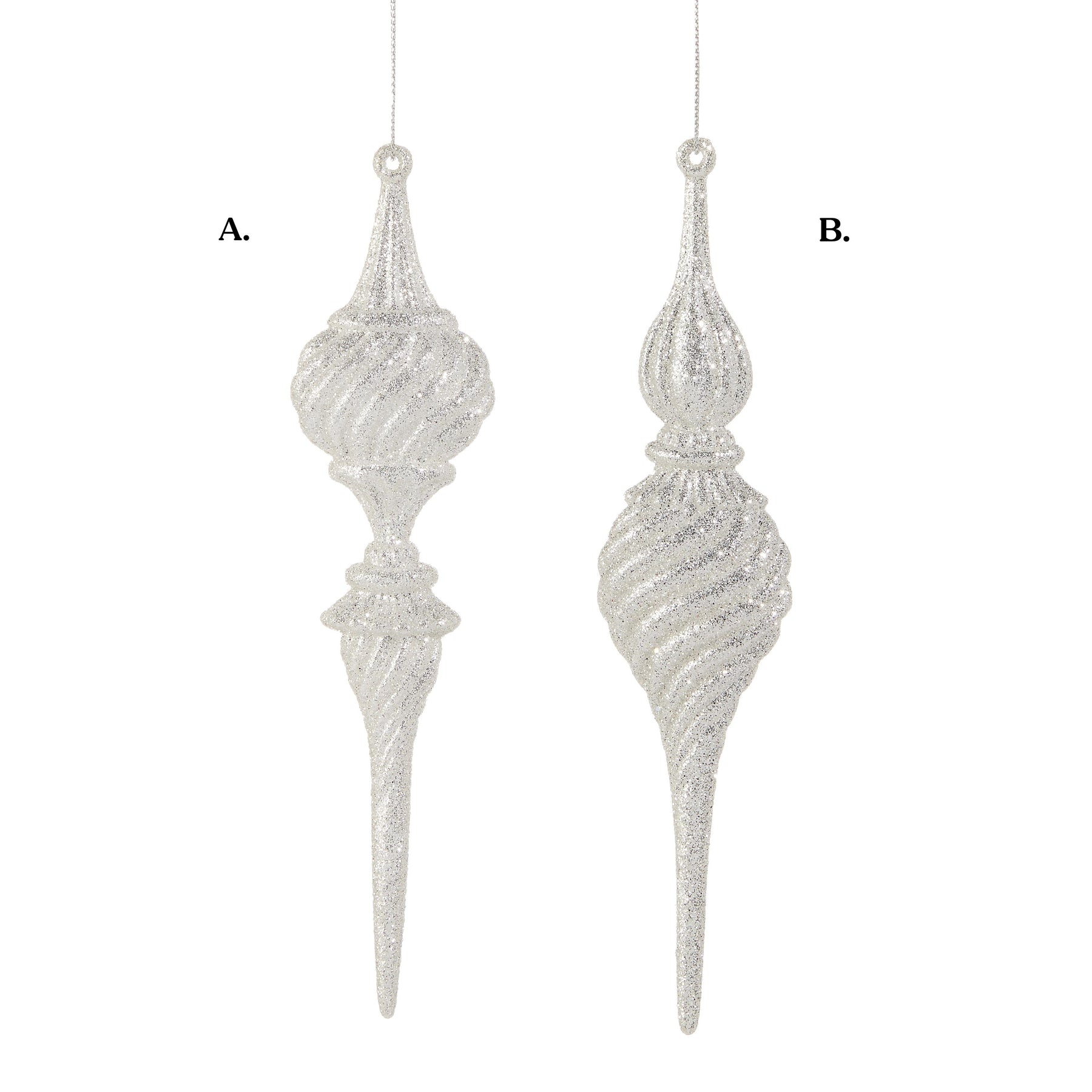 7" Silver Glitter Finial Ornament - Assorted & Sold Separately