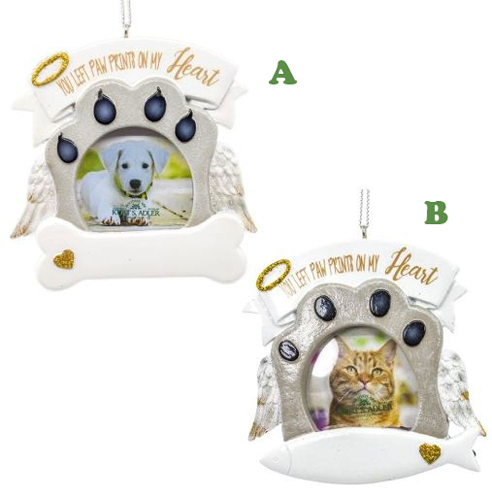 Kurt Adler, Dog Or Cat Paw Print on Heart Ornament, Assorted & Sold Separately