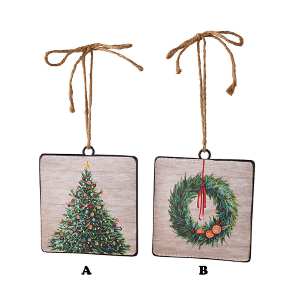 INVENTORY ISSUE Raz Imports, Holiday Botanical Disc Ornament, Assorted, Iron, 4"