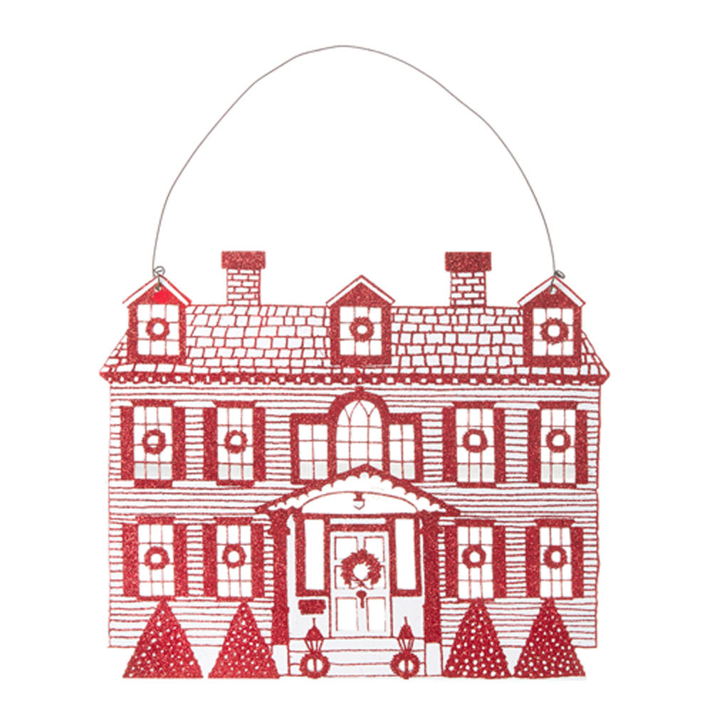 Raz Imports, Colonial Silhouette House Ornament, MDF, Red, 9.5"