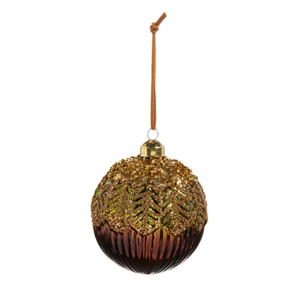 RAZ, Beaded Brown Ball Ornaments, 4"