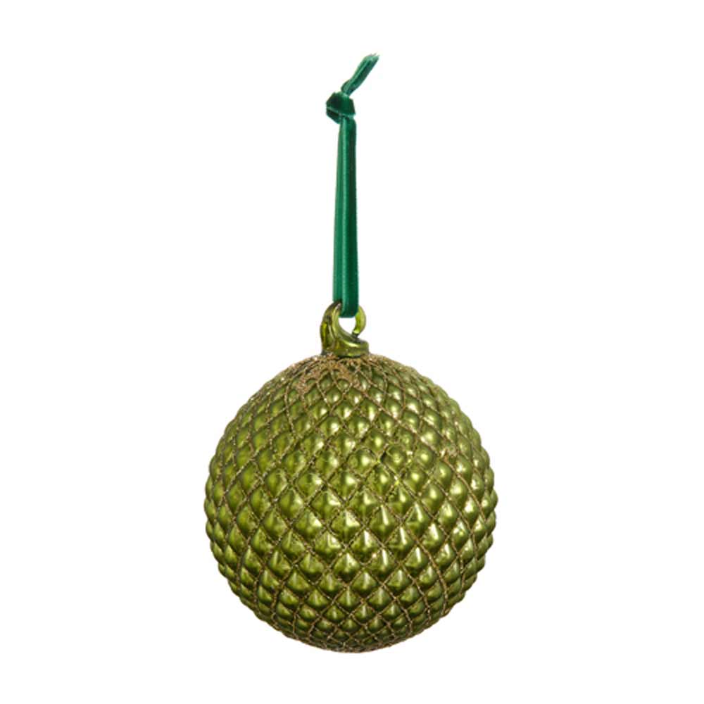 RAZ, Green Quilted Ball Ornament, 4"