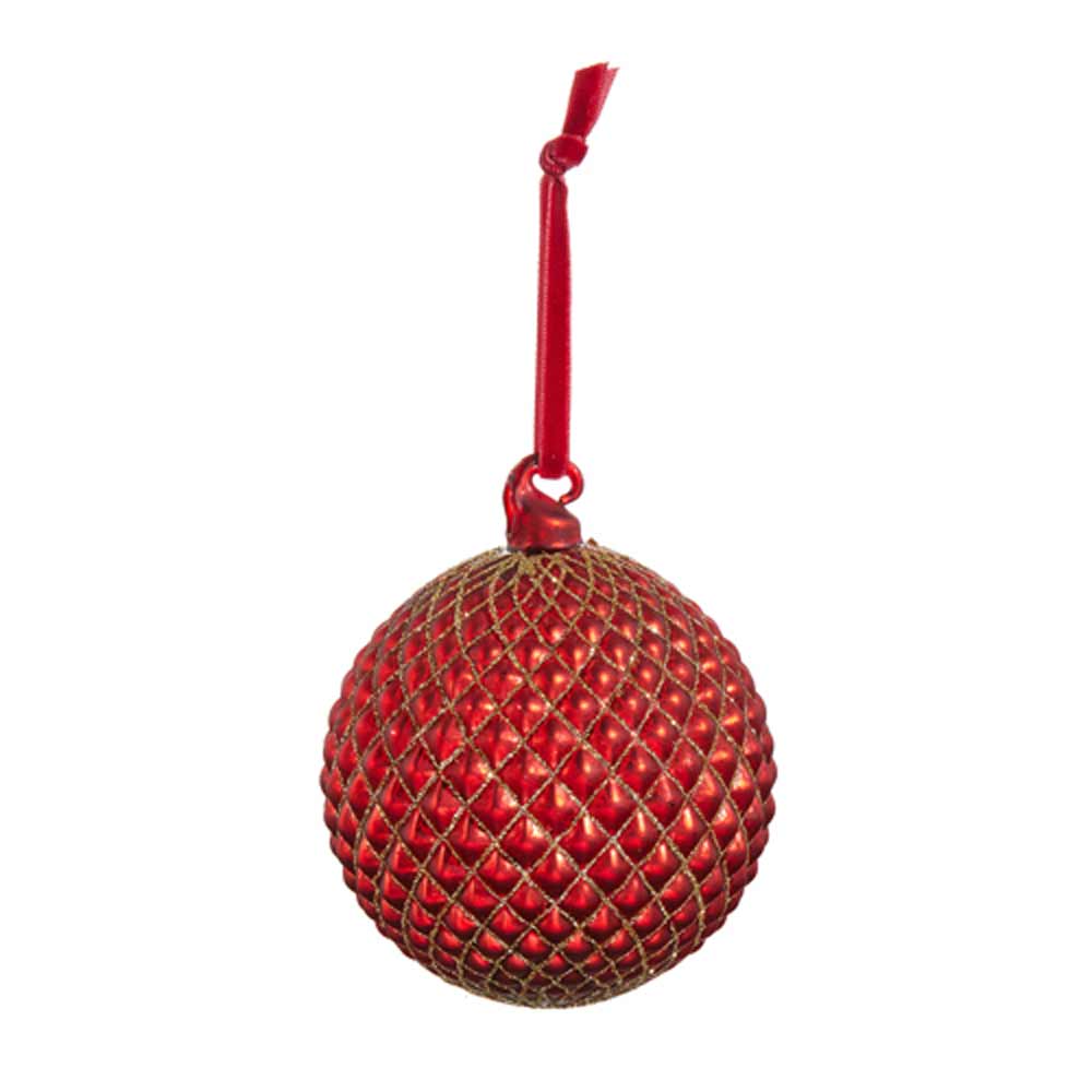 RAZ, Red Quilted Ball Ornament, 4"